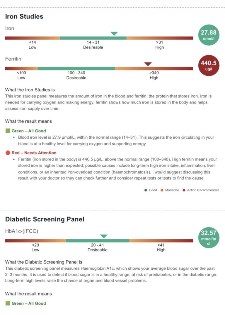 Hormone panel – Testosterone – High sensitivity, Oestradiol, Sex hormone binding globulin, Prolactin, Follicle stimulating hormone, Luteinising hormone, Progesterone, Dehydroepiandrosterone and Cortisol.